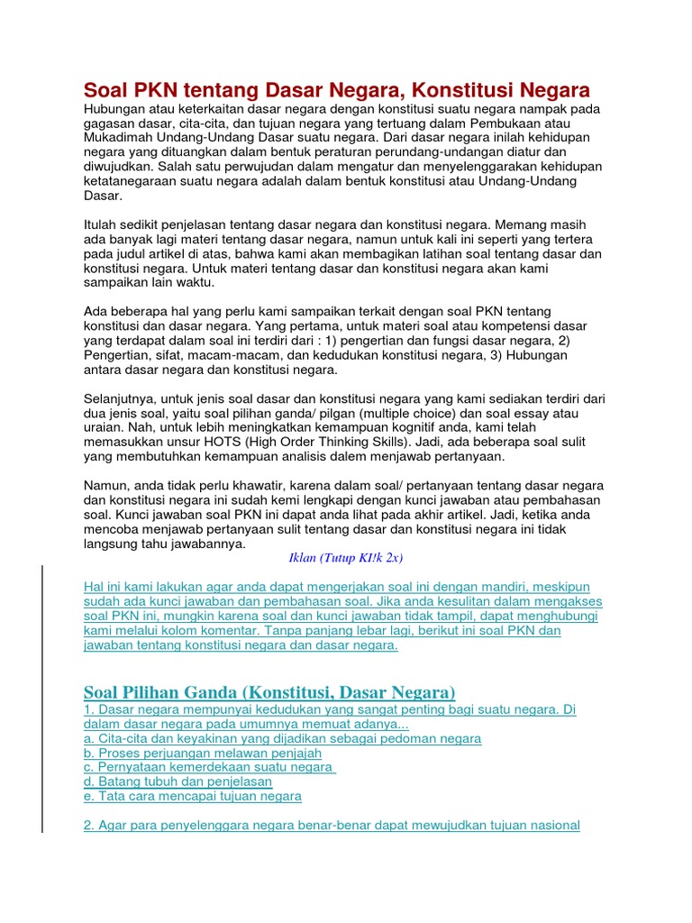 / Contoh Soal Pilihan Ganda Tentang Artikel Beserta Jawabannya / 35 Soal Teks Artikel Opini Pg Esay Kelas 12 Sma Kurikulum 2013 Lengkap Dengan Kunci Jawaban Mata Pendidikan / Contoh pelanggaran ham ringan yaitu.